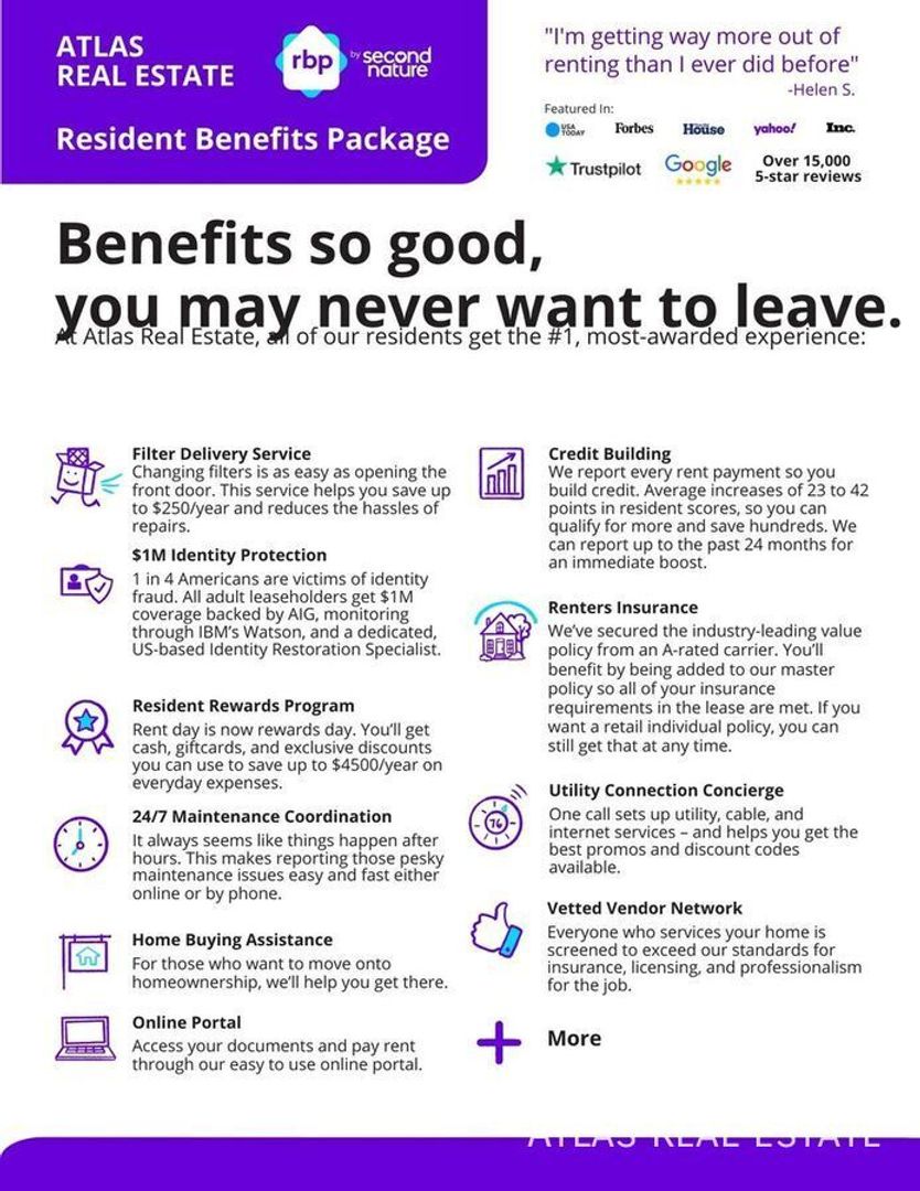This sweet deal makes life a breeze! It includes utility concierge, identity protection, 24/7 maintenance coordination, resident rewards program, credit building, and even renter’s insurance!