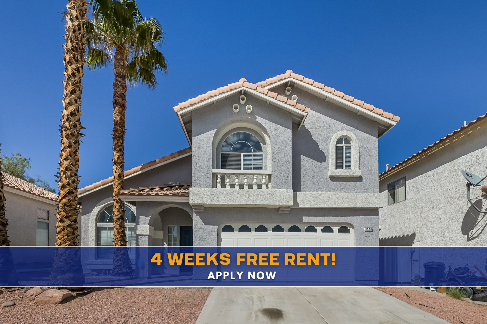 Lovely two-story home with a private pool, offering 3 bedrooms, 2.5 bathrooms, and 1,770 sq. ft. located near W. Gowan Rd and El Capitan Way. No HOA. Bright, spacious great room with multiple windows, kitchen with ample cabinet space, an island, and recessed lighting. Living room includes a fireplace. All bedrooms are upstairs, with a large primary suite. Home includes washer/dryer hookups, a two-car garage, and low-maintenance landscaping.