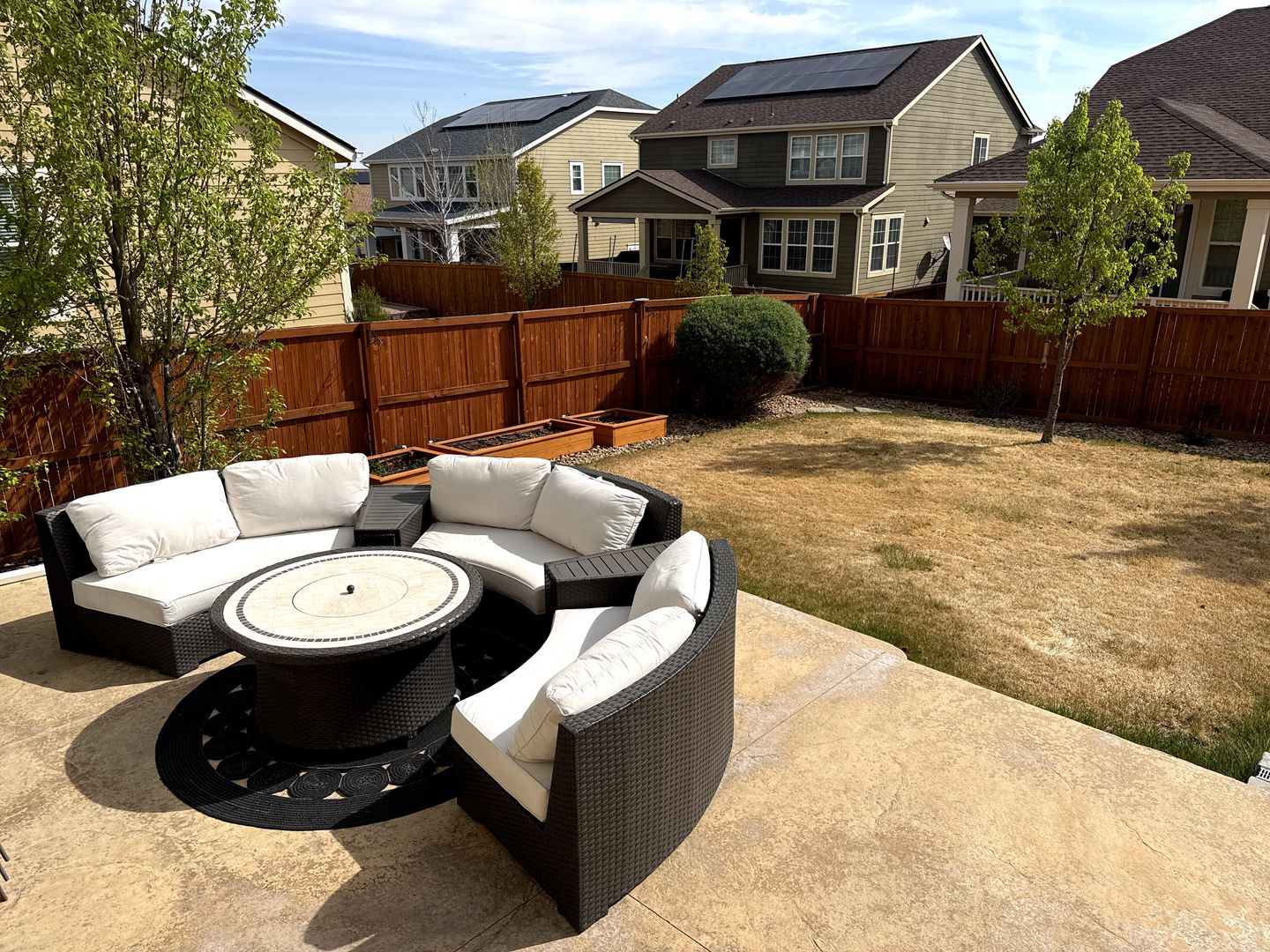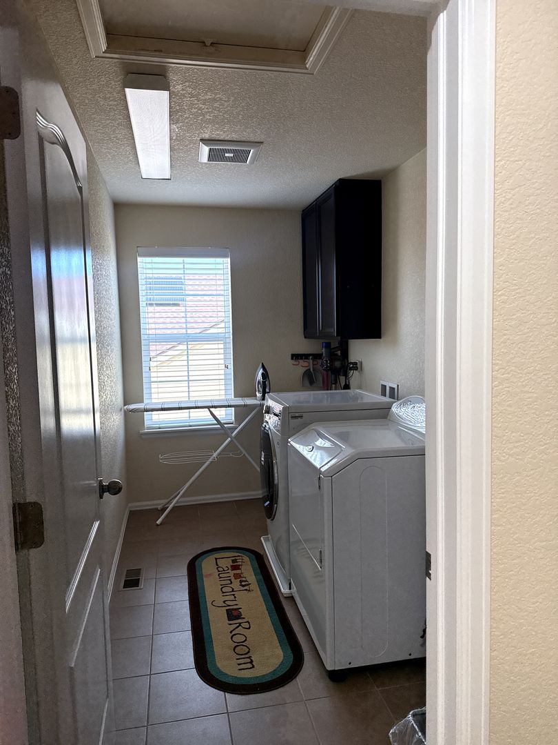 You can step outside to unwind on the beautifully patterned concrete back porch with an additional backyard space, perfect for pets.