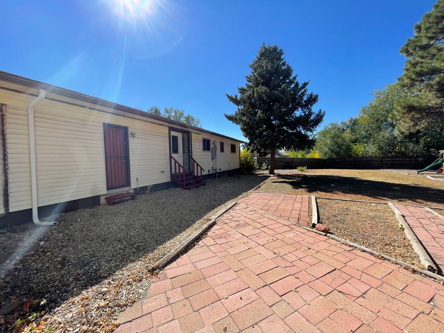 Beautiful two-level home featuring five cozy bedrooms and two bathrooms, including a main bathroom with a double sink and a relaxing bathtub. The kitchen is spacious and beautifully designed, offering plenty of storage. Enjoy a large fenced backyard with mature trees, a small playground, and additional storage sheds — perfect for both relaxation and family activities.