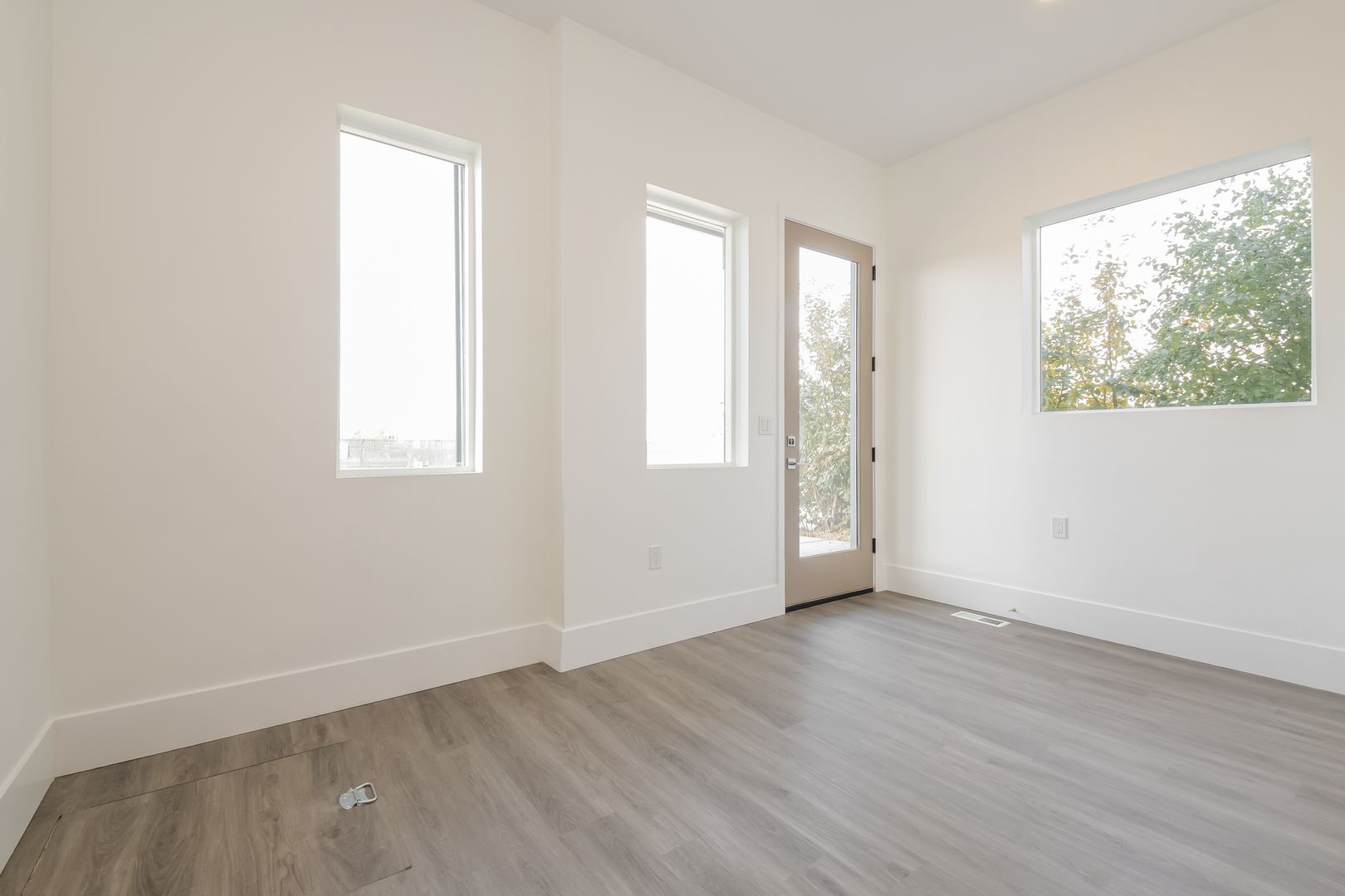 - Vinyl plank flooring on the primary levels with black iron handrails