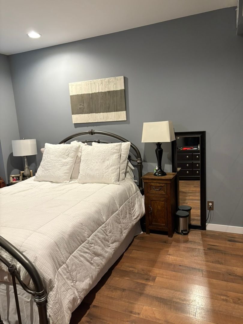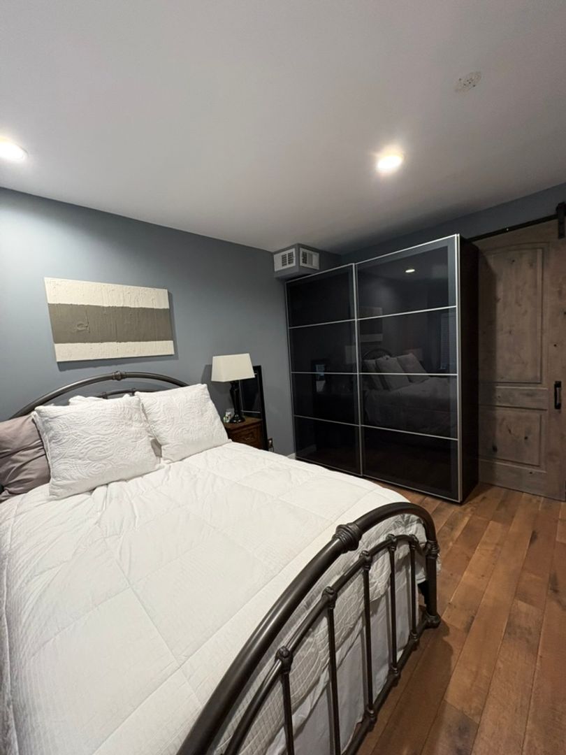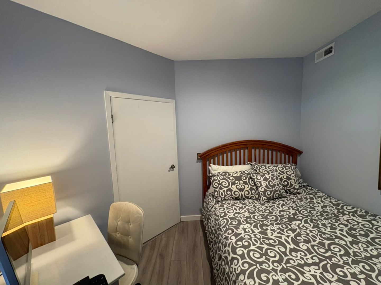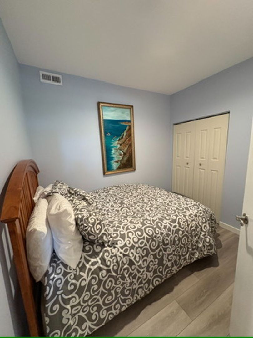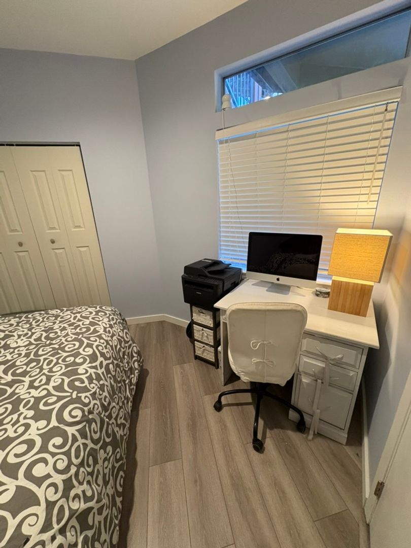 The second bedroom works perfectly as a guest room or private home office and provides great natural light along with generous closet space.