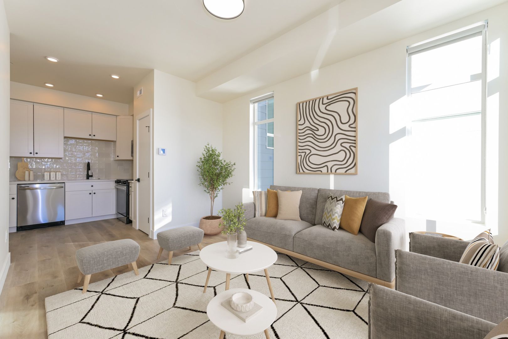 - Bright, open-concept living & kitchen area