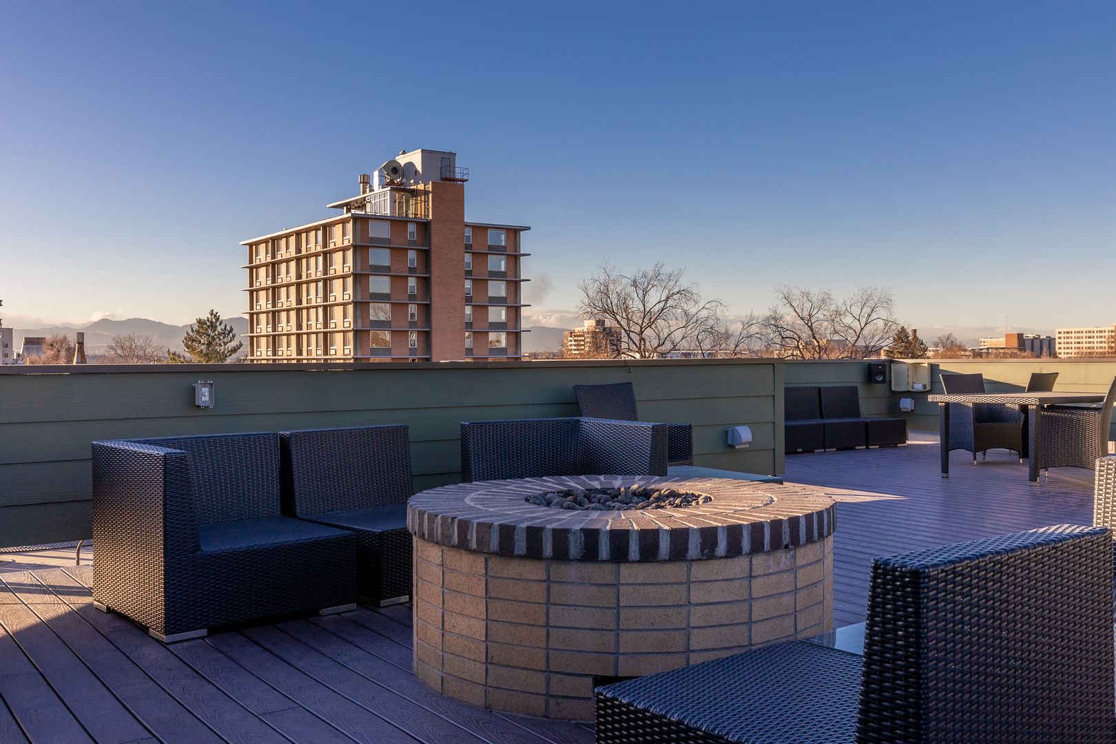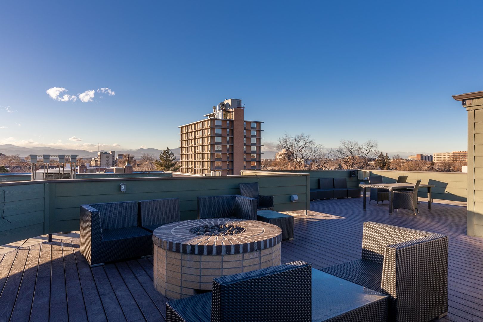 - Communal rooftop with sound system, grill, and sweeping city and mountain views