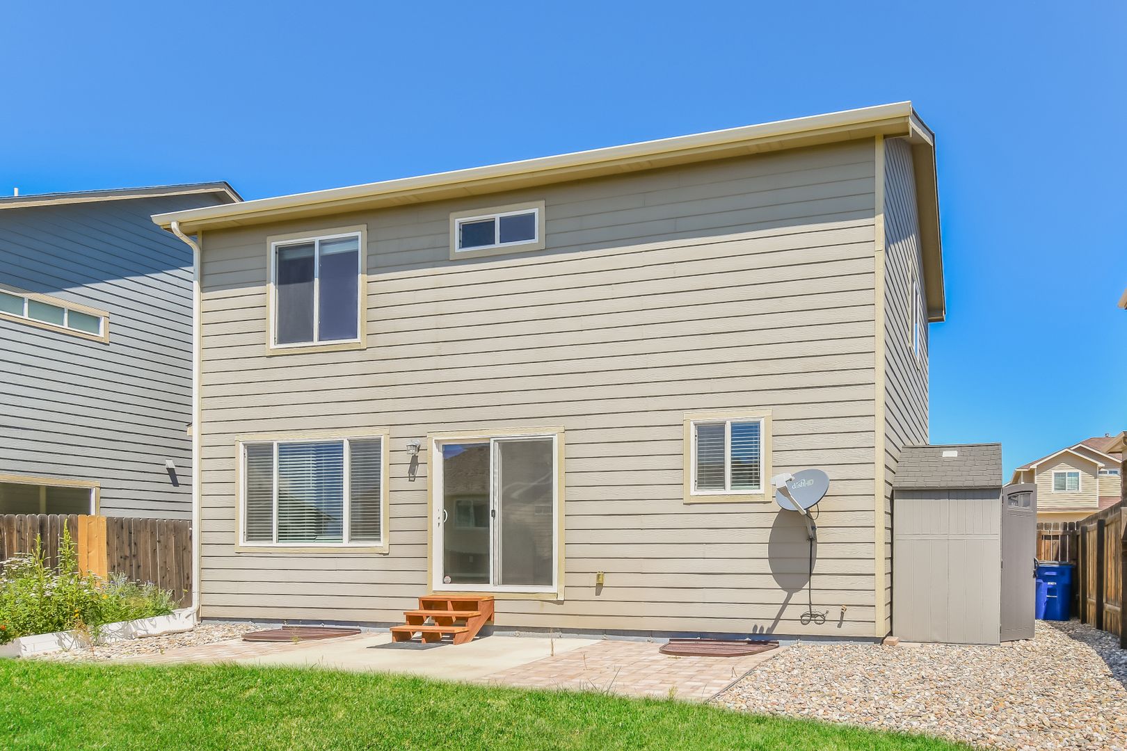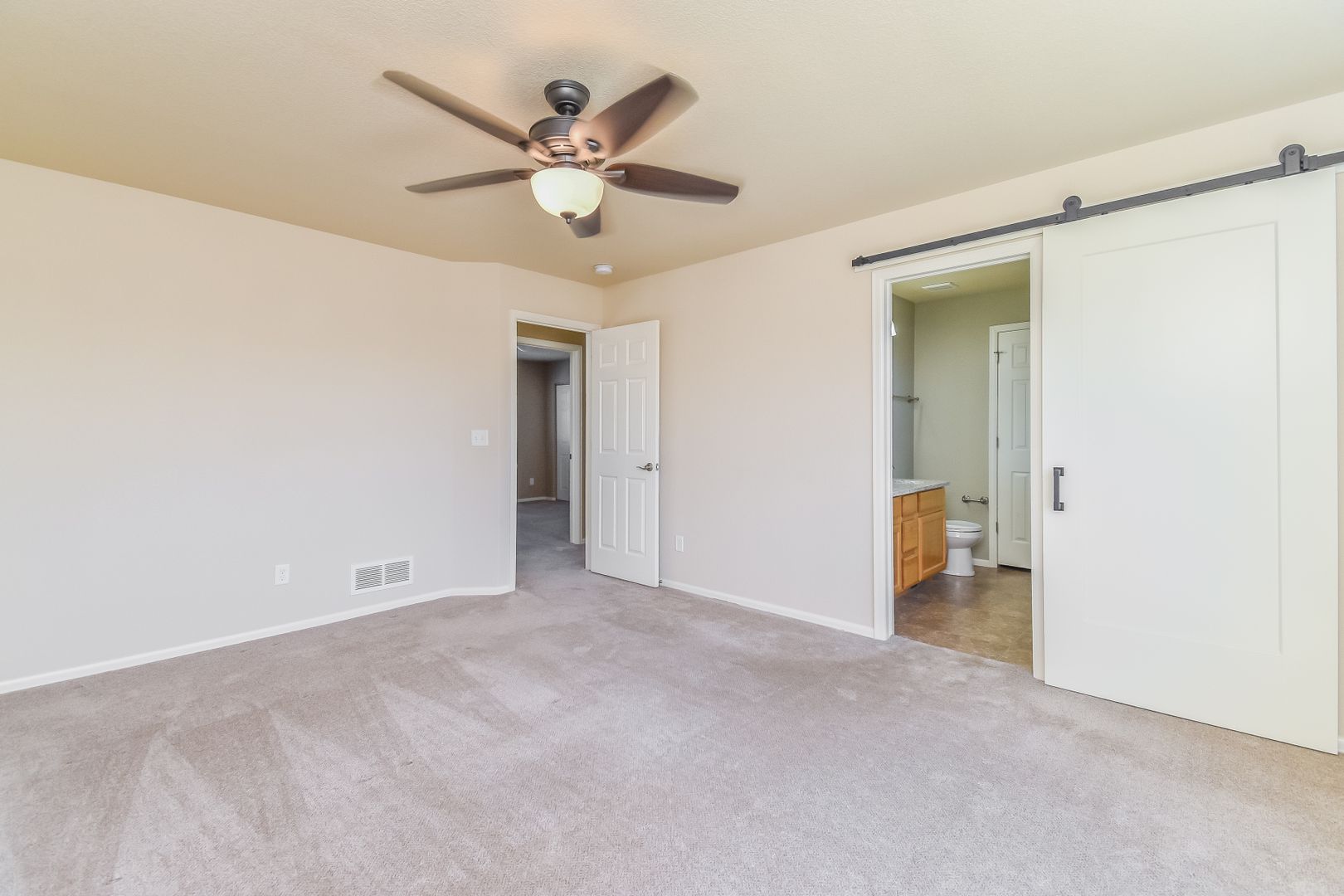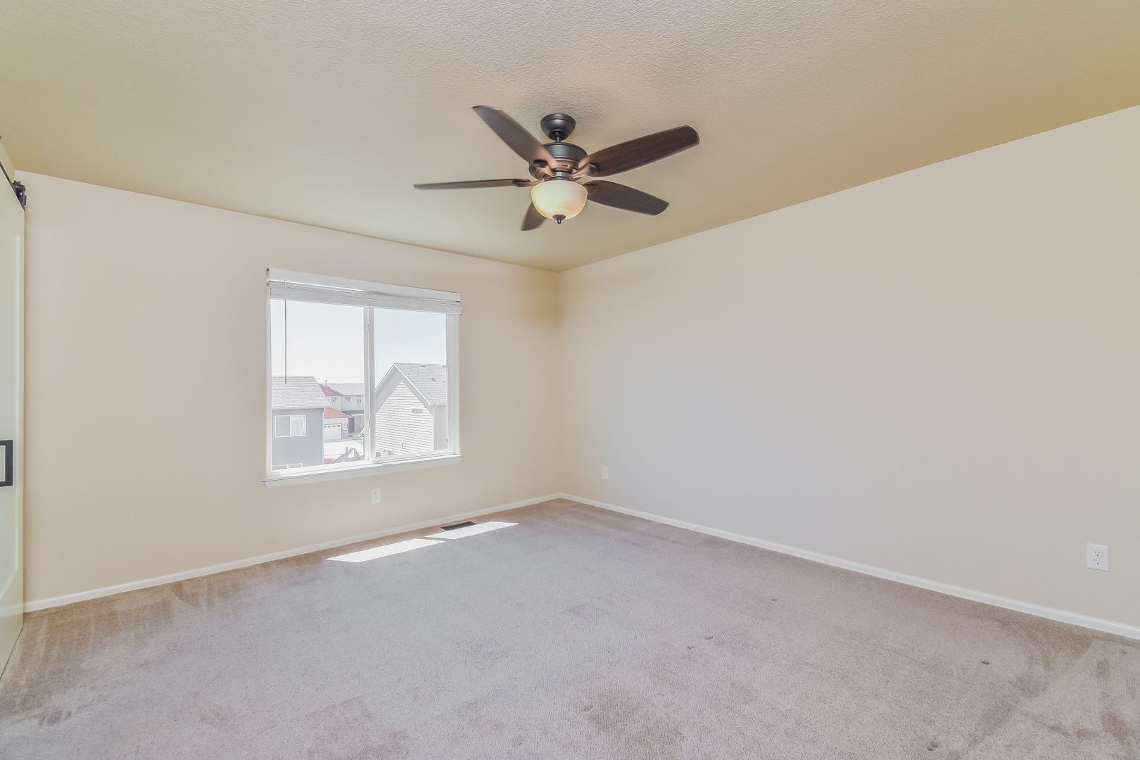 This stunning two-level home is located in El Paso County. The property boasts a spacious living room that provides a lovely view of the fenced backyard, allowing for a seamless indoor-outdoor connection. The kitchen is equipped with modern stainless amenities, giving it a sleek and contemporary feel. Additionally, there are ample cabinets in the kitchen, providing plenty of storage space for all your culinary needs. The main bedroom in this home has a beautifully designed bathroom, complete with double sinks.