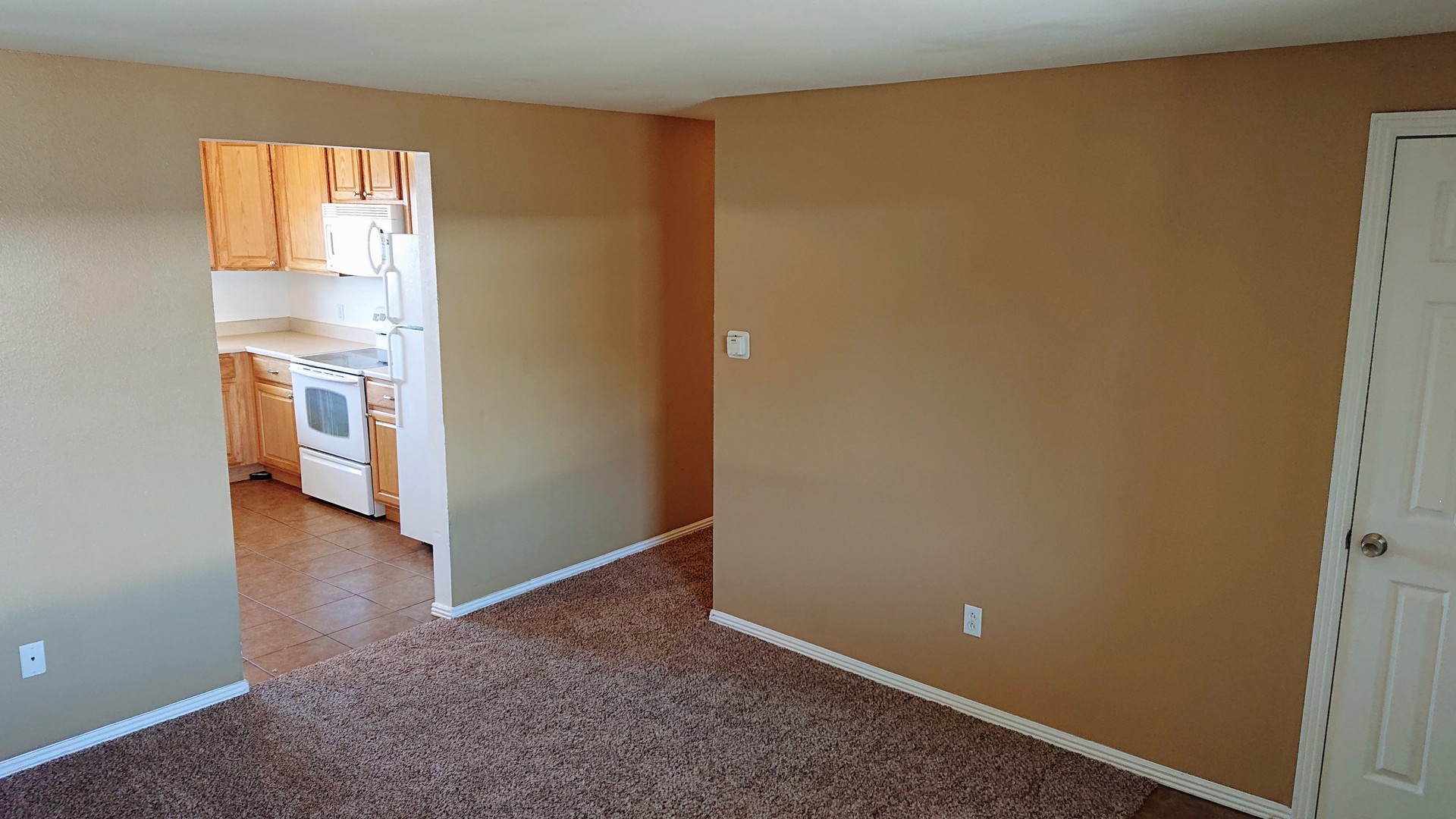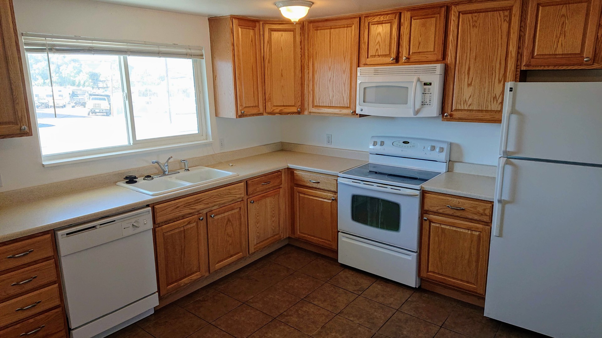 3 Bedroom, 1 full bathroom, front and rear entry, open kitchen with lots of cabinet space. Range/oven, fridge, dishwasher, microwave, washer/dryer on site. Newer plank flooring and carpeting.