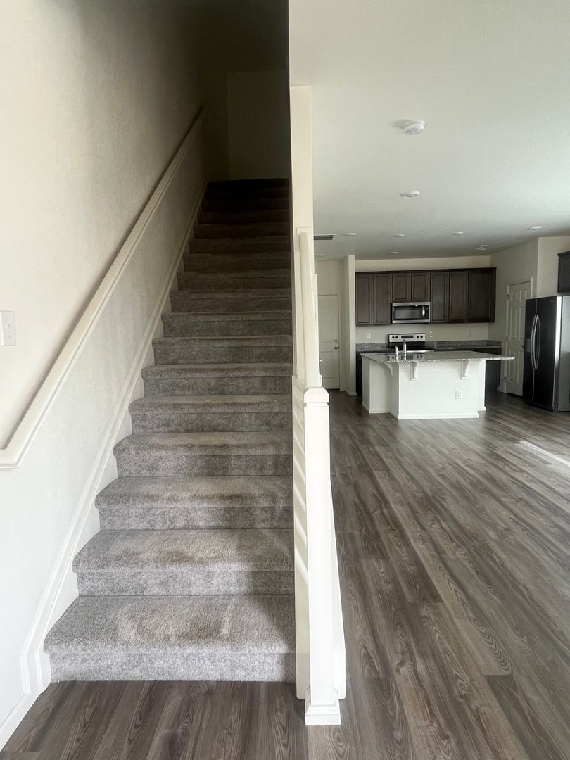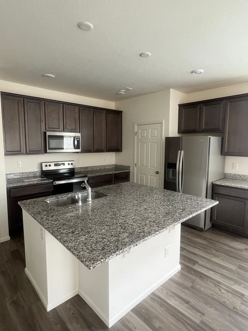 This home is just a few years old! Granite counters and upgraded cabinets, beautiful kitchen island, Refrigerator, washer, dryer, microwave, all included, great room and 1/2 bath. Upstairs is your primary bedroom with corner office space, 2 large secondary bedrooms! Beautiful laminate flooring on whole main level. 2 car attached garage with loads of storage!