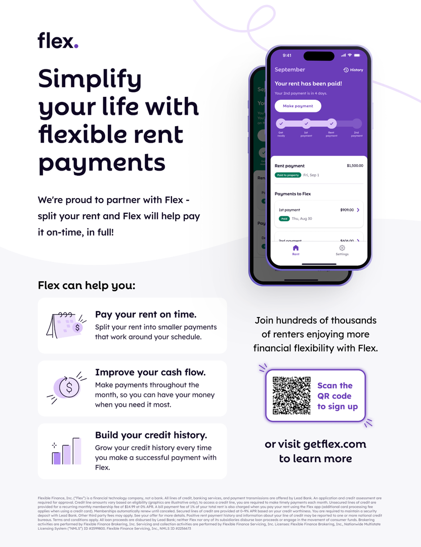 • As low as one month’s rent for qualified applicants
