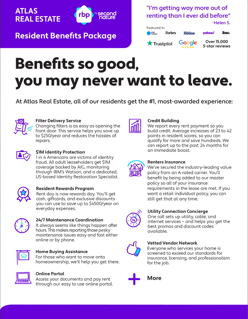 • Renter’s insurance included