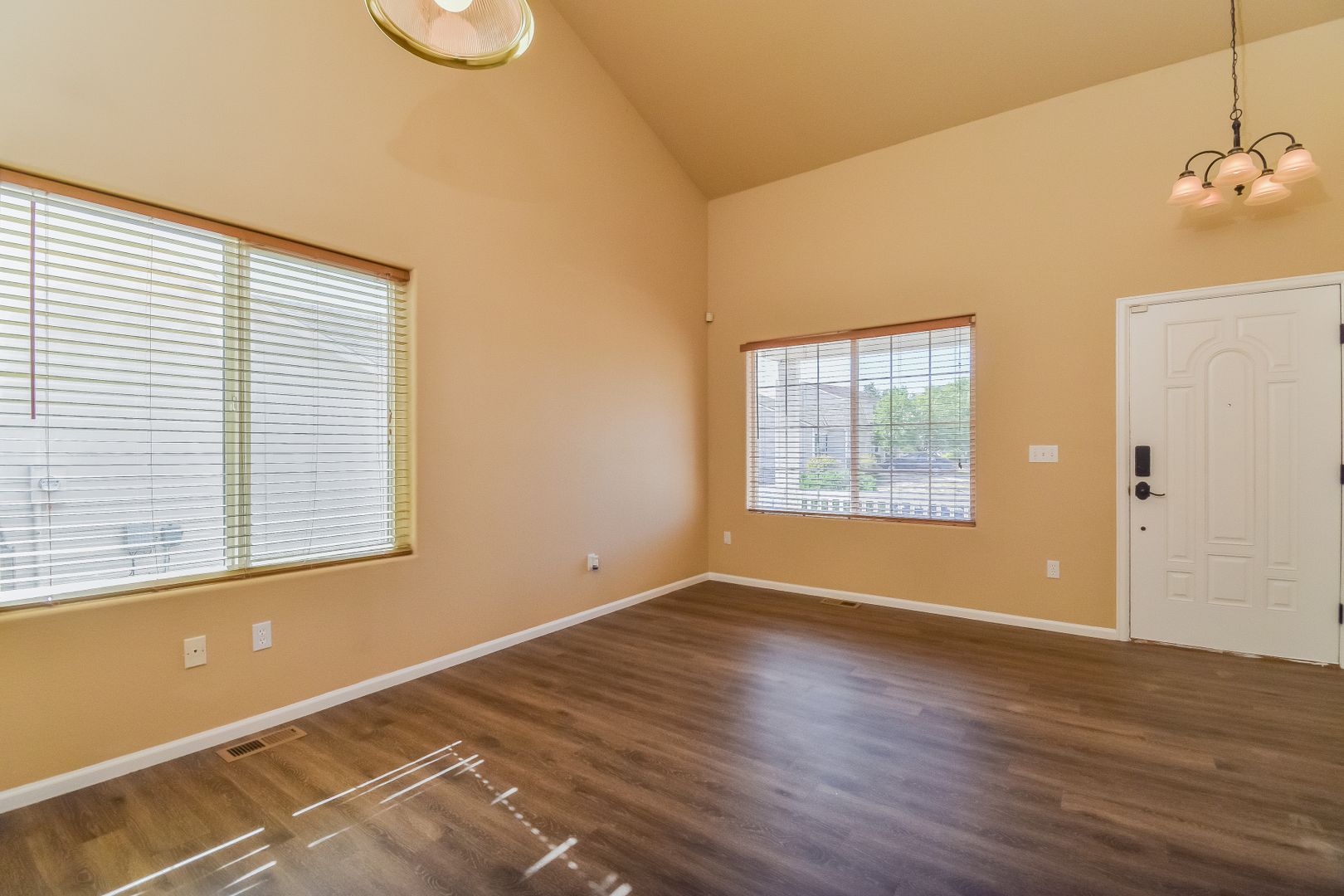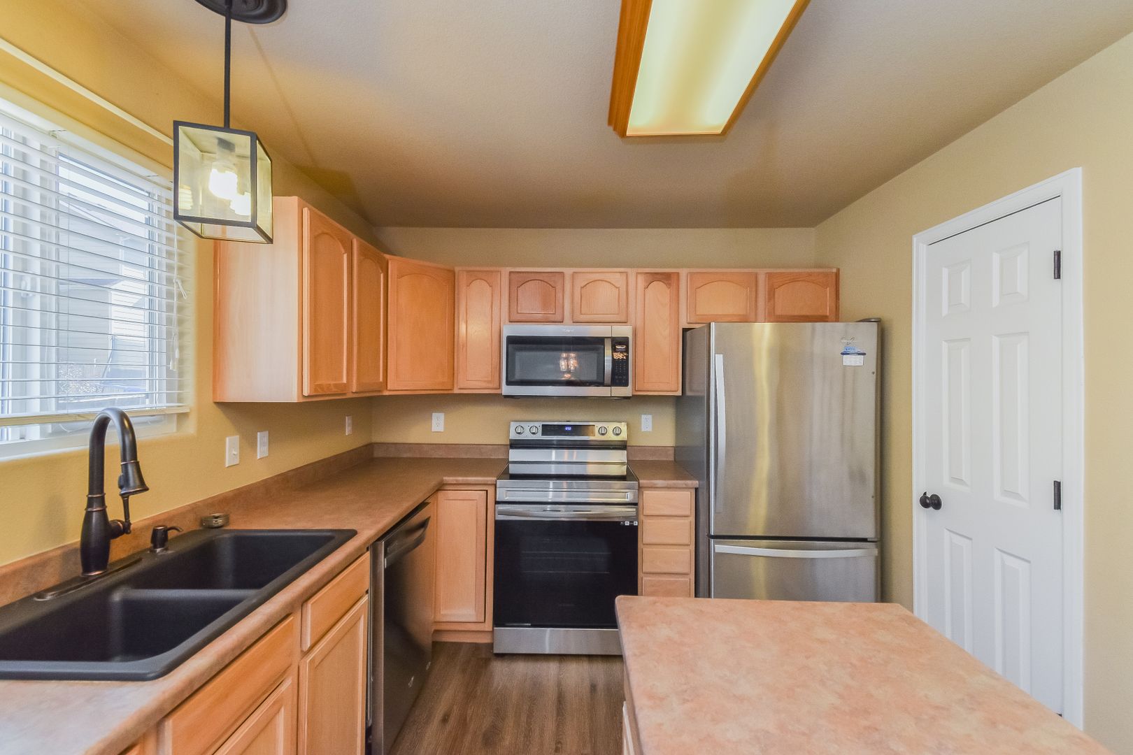 Gorgeous two-level home featuring 4 bedrooms, 3 bathrooms, and a 2-car garage. The spacious living room sits right next to the kitchen, which includes a convenient counter area and excellent natural lighting. A door from the living room opens to a beautifully fenced backyard, perfect for relaxing or entertaining. The cozy bedrooms are bright and welcoming, and the bathrooms include bathtubs for added comfort.