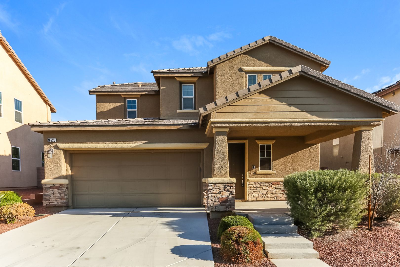 COMING SOON 5/15/2026! Wait... a front porch in Vegas? Look here! 3-bedroom, 3-bathroom home featuring 1,929 sq. ft.! Meticulously maintained home with spacious living room open to the kitchen. Kitchen has stainless steel appliances, granite countertops, island and breakfast bar. This home has a thoughtful floor plan with a large laundry room on second floor with washer and dryer hook up. Low maintenance landscape. Large bedrooms. Two car garage. Make this house your home today!