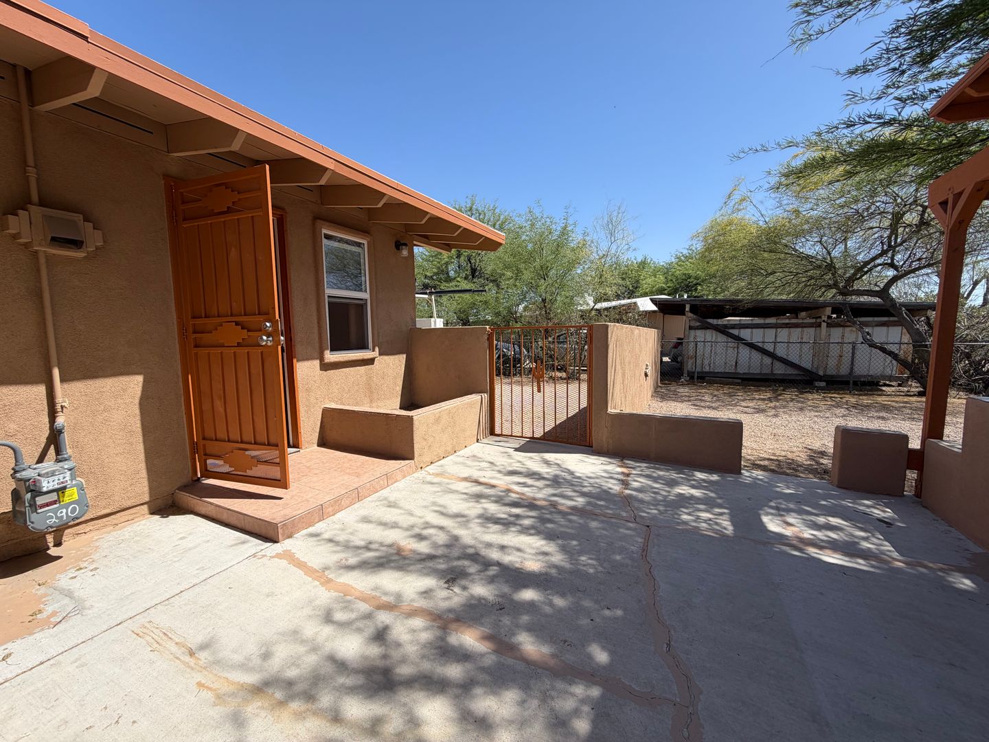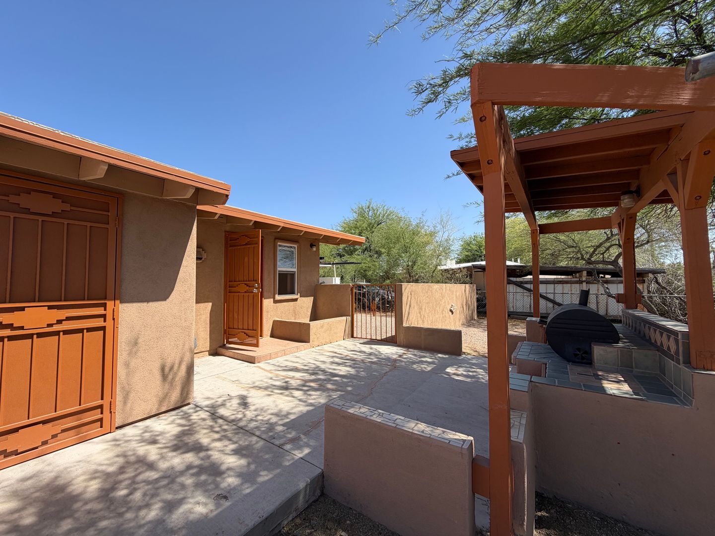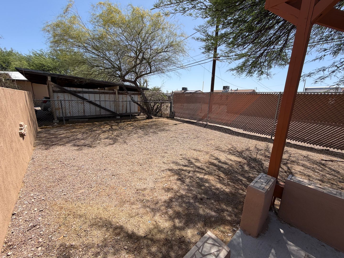 Updated 2-bedroom, 1-bath house in Tucson featuring central air and tile flooring throughout for easy upkeep. The home includes a dedicated laundry room in the backyard with Gas & Electric dryer hookups. ceiling fans throughout, built-in shelving and a defined dining area. Step outside to your large, fenced, private backyard that provides outdoor space for relaxation or gardening. Conveniently located and move-in ready, this property offers practical updates in a comfortable layout.
