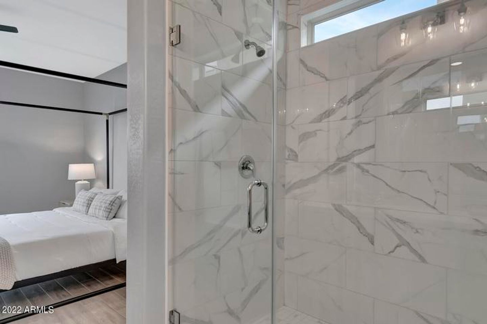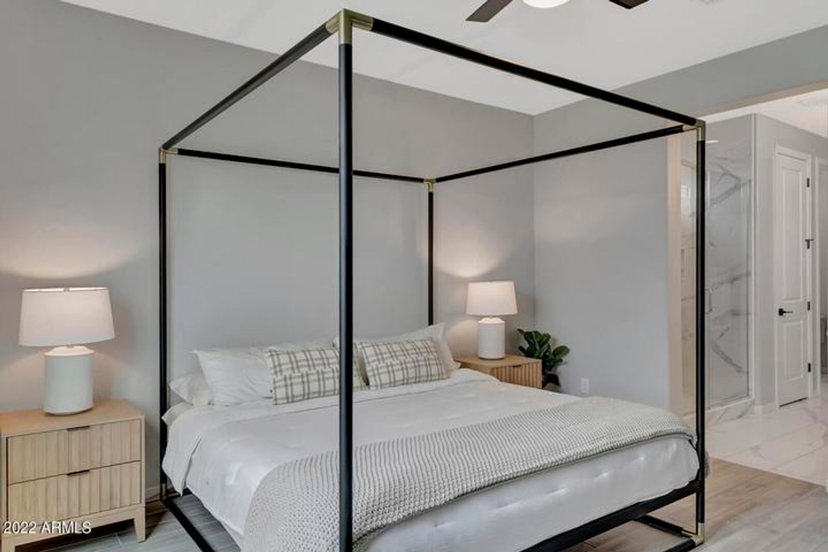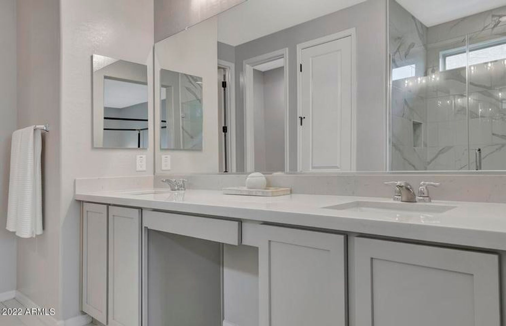 The primary suite includes a spacious layout with a dual-sink vanity and a walk-in shower. Additional bedrooms are well-sized and versatile, ideal for guests, a home office, or additional living space.