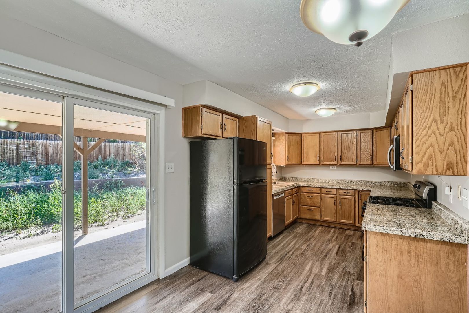 • Fenced backyard with a covered patio, perfect for relaxing or outdoor dining