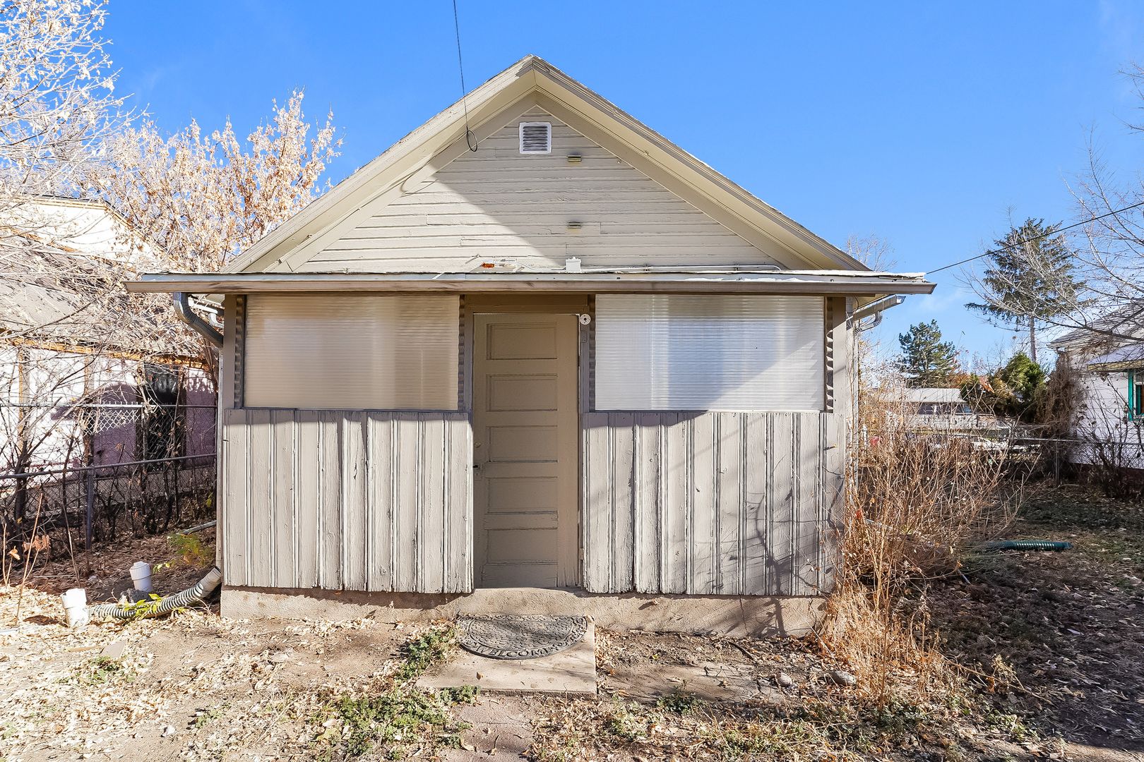Welcome to this charming 2-bedroom, 1-bathroom house located in the desirable city of Denver, CO. This cozy home offers a spacious backyard, perfect for outdoor activities and gatherings. The storage shed provides ample space for all your belongings, ensuring a clutter-free living environment. With a basement included, you'll have extra room for storage or to create a personalized space. Enjoy the convenience of a covered patio, ideal for relaxing and entertaining guests. Beat the summer heat with the swamp cooler, providing a refreshing and energy-efficient cooling system. This house is also pet-friendly, allowing you to bring your furry companions along to enjoy the comfortable living space. Located in a prime area, you'll have easy access to all the amenities and attractions that Denver has to offer. Don't miss out on this wonderful opportunity to make this house your home. Contact us today to schedule a viewing and experience the charm and convenience of this lovely property.