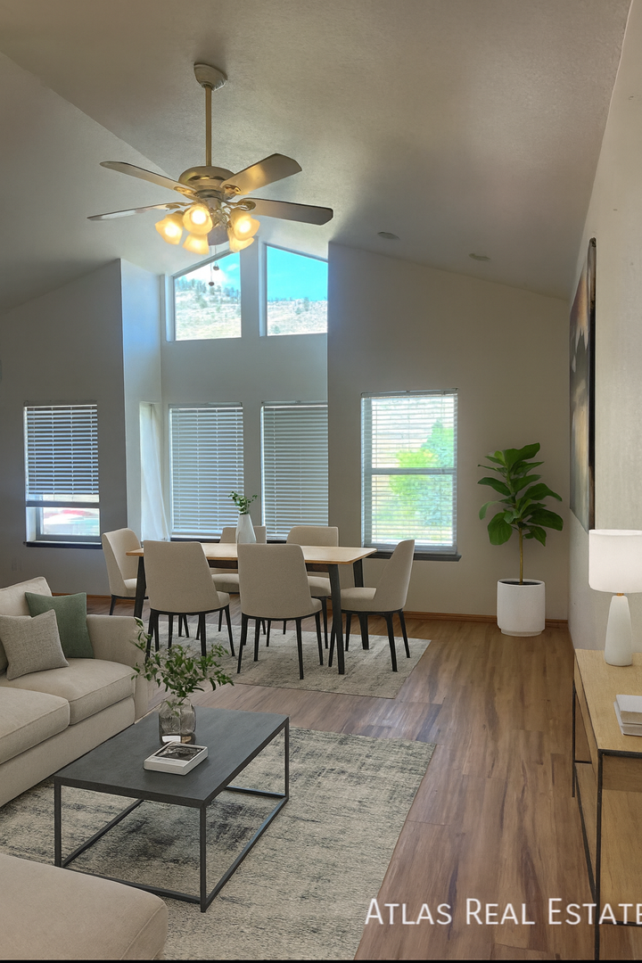 This charming 1,592 sq ft, single-story home offers 4 bedrooms and 3 full baths, thoughtfully designed for comfort and ease. Step into an inviting living area with vaulted ceilings and expansive windows that frame spectacular views and lead directly to a sun-drenched deck—an ideal spot for morning coffee or evening wind-downs.