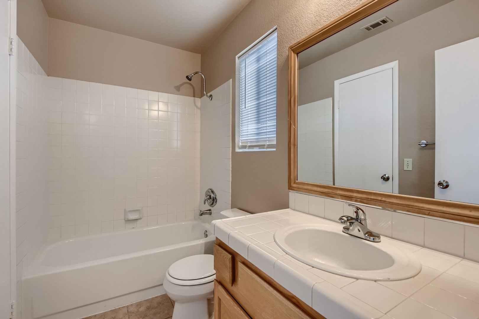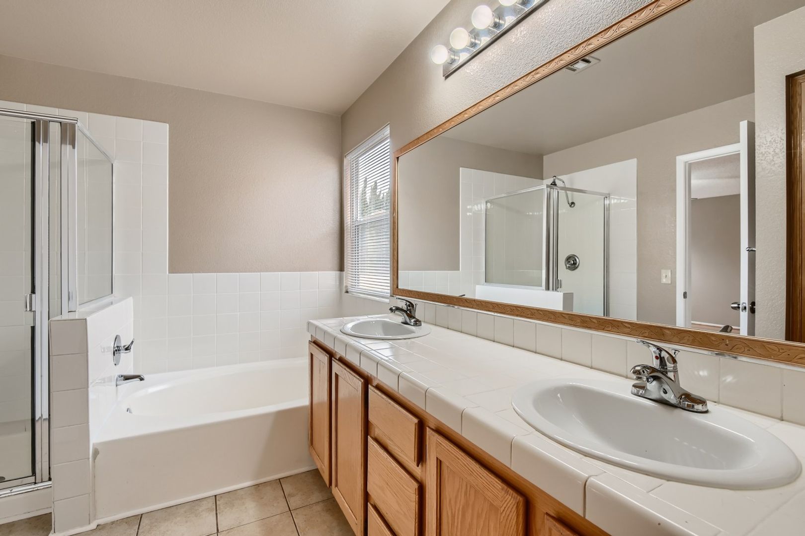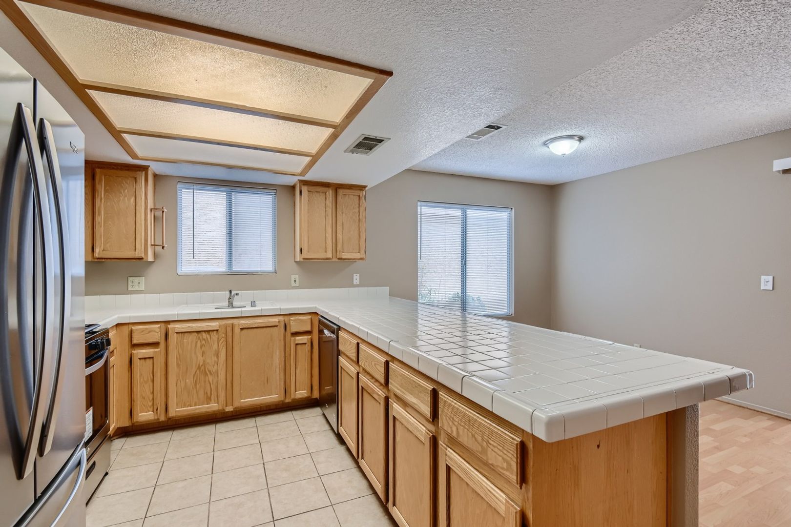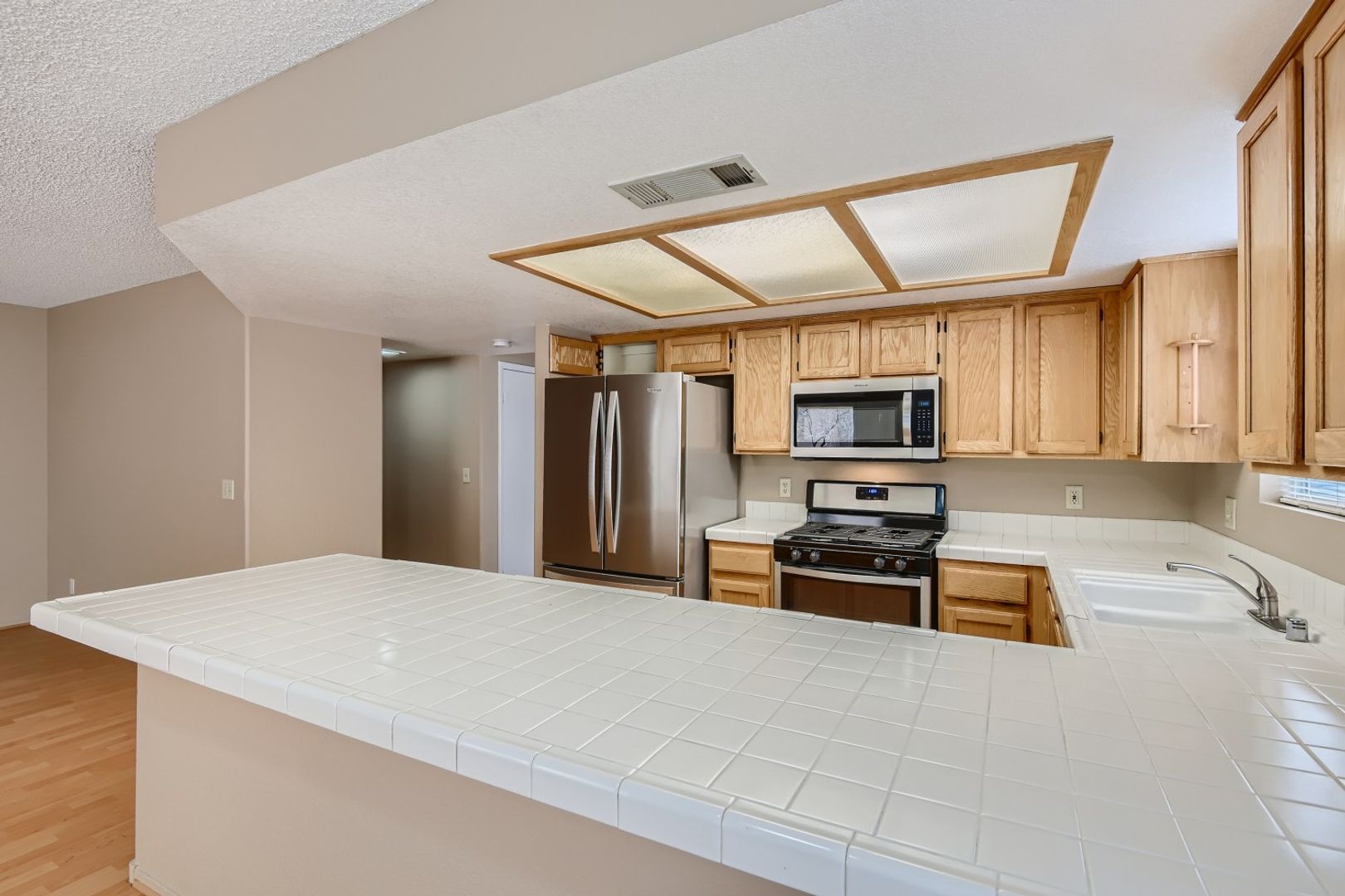 Great kitchen with tile countertops and breakfast bar. Spacious dining room/living room combo featuring a cozy fireplace. Nice bedrooms and huge master bedroom with lovely bathtub and walk-in shower and double vanity. Incredible sized backyard and an attached garage with 2 parking spaces.